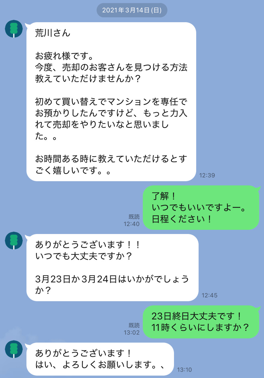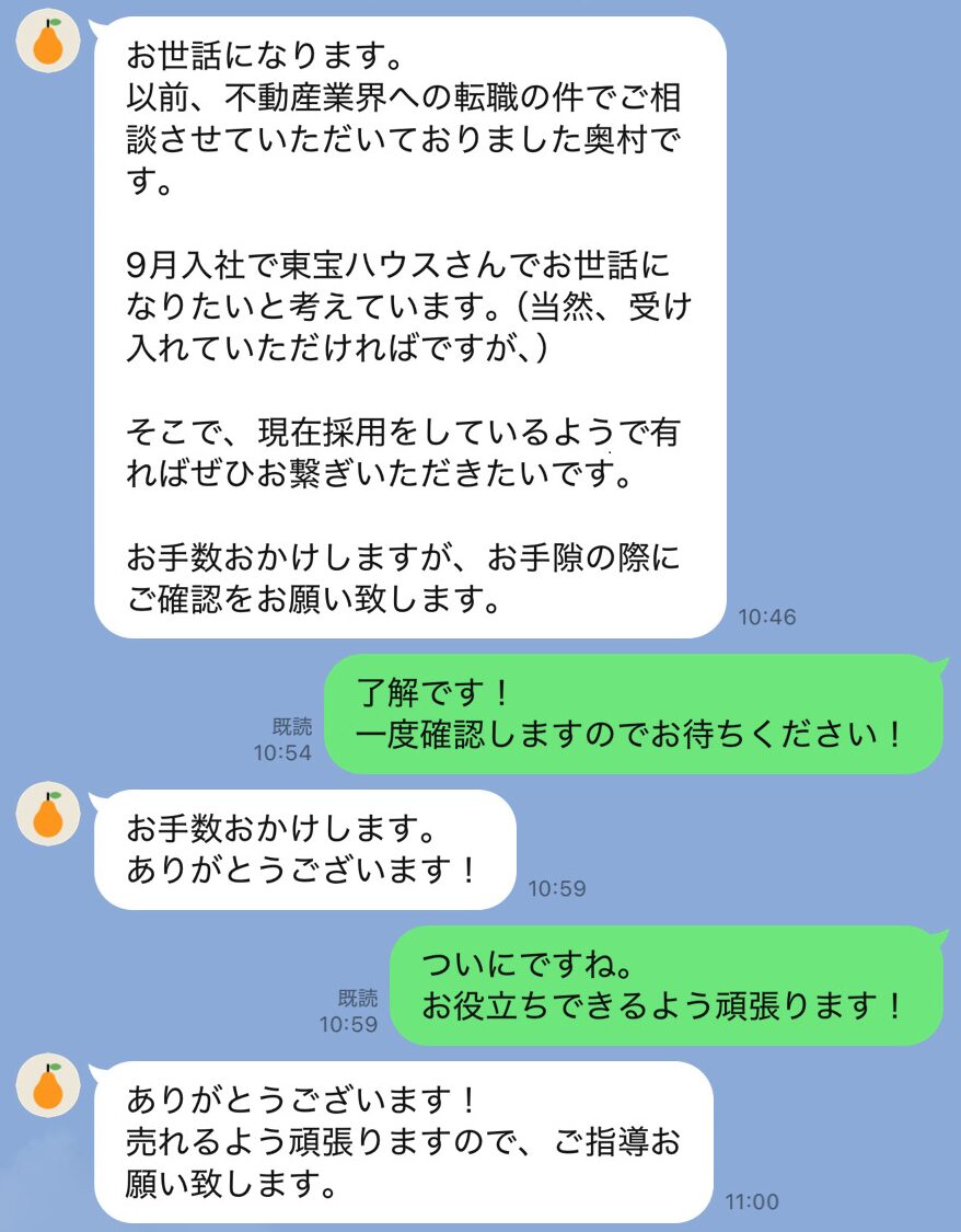 【LINE画像あり】不動産営業に転職して大成功をした奥村さんの紹介